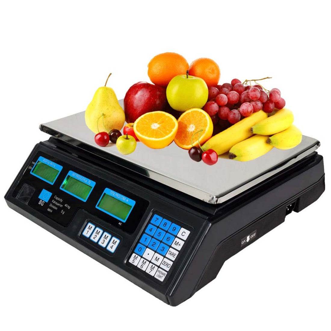 Електронният кантар до 40 кг предлага точни измервания и удобство както за дома, така и за търговска употреба. С ярка зелена подсветка на дисплеите и ясно видими показания дори на слънце, уредът гарантира бързо и лесно отчитане на теглото и цената на продуктите.